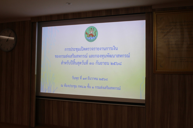 วันที่ 17 ธันวาคม 2568 นางสาวโสภิดา ศรัทธารัตน์ ผู้อำนวยการกองคลัง กรมส่งเสริมสหกรณ์ พร้อมด้วยเจ้าหน้าที่ที่เกี่ยวข้องของกองคลัง เข้าร่วมการประชุมเปิดตรวจรายงานการเงินของกรมส่งเสริมสหกรณ์ และกองทุนพัฒนาสหกรณ์ สำหรับปีสิ้นสุดวันที่ 30 กันยายน 2568 ร่วมกับสำนักงานการตรวจเงินแผ่นดิน ในการนี้ นางสาวปรานอม จันทร์ใหม่ ผู้เชี่ยวชาญ รักษาการในตำแหน่ง ผู้ทรงคุณวุฒิด้านการสหกรณ์ เป็นประธานในการประชุมดังกล่าว ณ ห้องประชุมกองพัฒนาระบบสนับสนุนการสหกรณ์ 2 อาคาร 3 กรมส่งเสริมสหกรณ์
