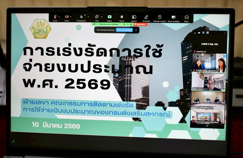 วันที่ 10 มีนาคม 2569 นางสาวโสภิดา ศรัทธารัตน์ ผู้อำนวยการกองคลัง กรมส่งเสริมสหกรณ์ เป็นประธานในการประชุม การเร่งรัดการใช้จ่ายงบประมาณ พ.ศ. 2569 รายจ่ายลงทุน