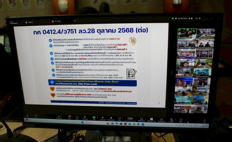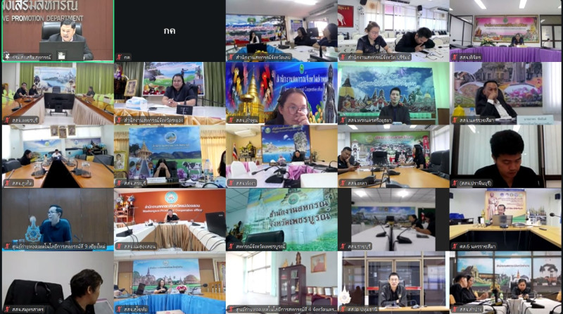 ส่วนกลางและส่วนภูมิภาค ผ่านระบบออนไลน์ Zoom Meeting ณ ห้องประชุม 226 ชั้น 2 อาคาร 1 กรมส่งเสริมสหกรณ์ สำหรับประเด็นในการประชุม ได้แก่ การเร่งรัดการใช้จ่าย